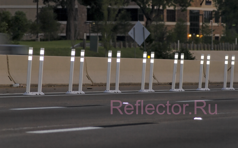 Яркие ночью и флуоресцирующие днем дорожные ограничители и конусы, изготовленные из световозвращающих материалов, снискали заслуженную популярность у дорожных служб. Они компактны, прочны и безопасны при столкновении с ними.