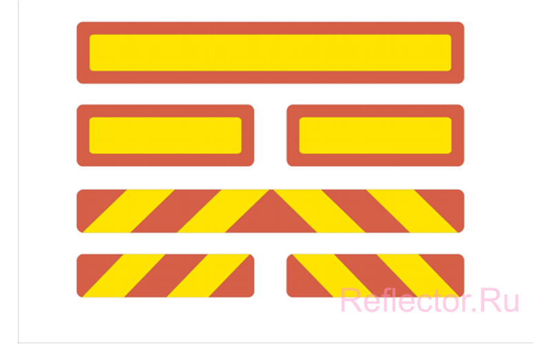 Задние опознавательные знаки транспортных средств большой длины и грузоподъемности с желтой световозвращающей и красной флюоресцентной пленками соответствуют требованиям Правил ЕЭК ООН №70-01 и Технического регламента "О безопасности колесных транспортных средств"