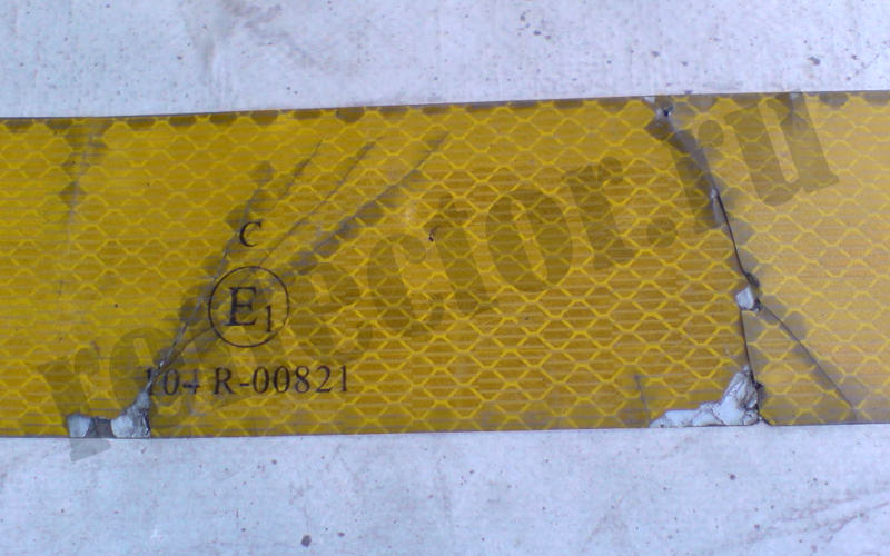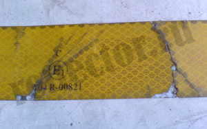 Сегодня материалы, соответствующие требованиям технического регламента, производят всего 3 компании: 3M, Avery и Reflexite.Номера сообщений об официальном утверждении типа у них следующие: у 3M – E1-104R-00821, у Avery – E13-104R00-001, у Reflexite – E4-104R00-001 и E4-104R00-002. Однако, их тоже подделывают (посмотрите на фото подделки №4).